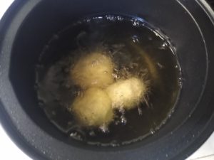 ④鍋や揚げ機に油を入れて唐揚げやフライよりも低め160℃に熱し