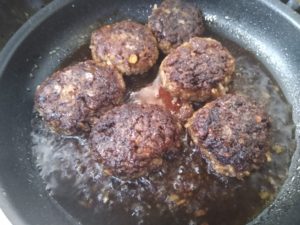 作った照り焼きを絡め強めの中火にし煮絡めます。