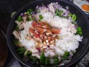 ④火が通ったら温かいご飯をいれてソースを入れて混ぜます。