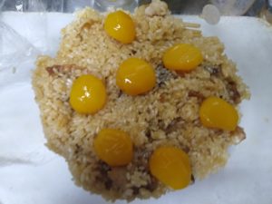 ⑨取り出してしゃもじで大きく混ぜて甘栗を乗せる。