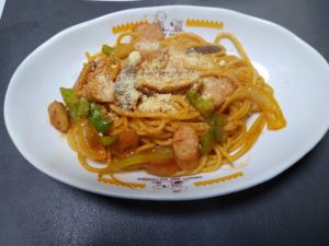 このナポリタンは具材に「カゴメのレンジで簡単トマトソース」を混ぜただけで簡単にできました。