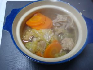 昨日は特に控える必要はありませんでしたが白菜、キノコ系、人参、豚肉、鳥団子の鍋を食べました。
