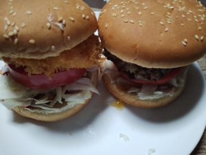 昨日はハンバーガーと寒いときに良いにんにくスープ。