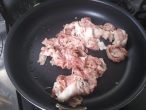 ③フライパンを熱し油大さじ1/2入れて牛肉を炒めます。