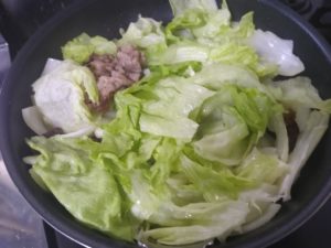 ⑤レタスを加えれ簡単に炒め、合わせ調味料を入れる。