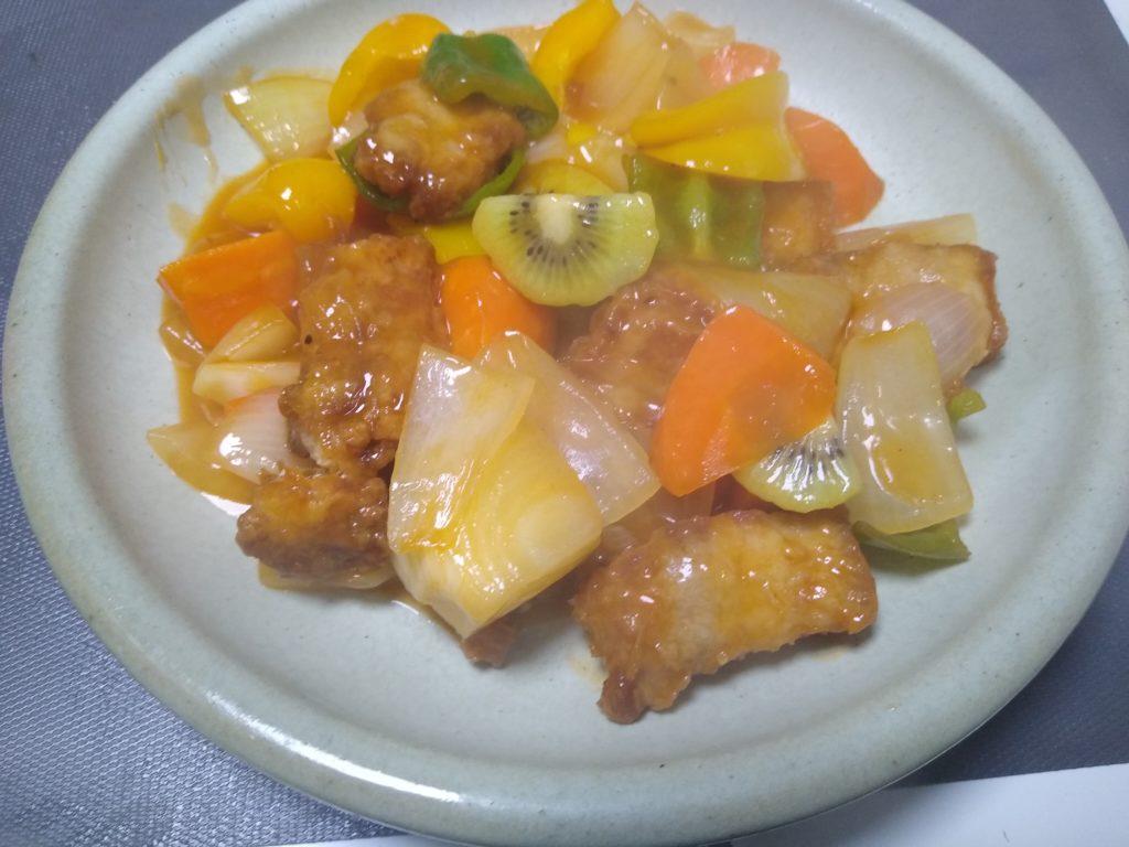 本日の体重です。 今日は昨日に比べ下がりました。 昨日は酢豚に天ぷらを食べましたが少し炭水化物は控えめにしました。 「キューイを混ぜた酢豚」を作りました。昔はなんでパイナップルが入ってるんだと思いましたがパイナップルとキューイは肉を柔らかく... -